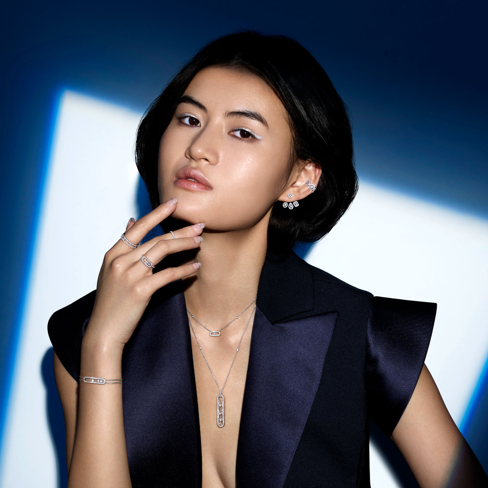 Alle Schmuckstücke der Schmuckkollektion von Messika sind einzigartig: Die Grammzahl, die Größe und das Karatgewicht können von einer Kreation zur nächsten leicht variieren.