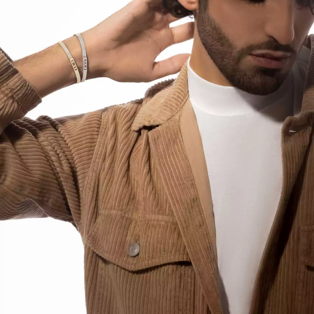 Der berühmte Move Noa Diamantarmreif zeigt sich hier in einer verfeinerten Version aus Gelbgold, die vollständig mit Diamanten ausgefasst ist. Eine reine und schillernde Linie, die sich an die Haut schmiegt und das Handgelenk mit seiner modernen Ästhetik schmückt, ohne jemals zu übertreiben. Unisex-Luxusarmband: Das grafische Design und die Musikalität des Move mit seinen drei beweglichen Edelsteinen schaffen genau die richtige Mischung aus rockigem Look und Eleganz für alle. Tragen Sie es symmetrisch, indem Sie es an beiden Handgelenken tragen oder für einen intensiveren Effekt gemeinsam. Dank des integrierten Verschlusses lässt sich dieser kultige Diamantarmreif im Handumdrehen an- und ablegen. Ein Armband, das mit allen Kontrasten spielt: ein Diamantschmuckstück, das ultramodern und zugleich klassisch, lässig, elegant, leicht zu tragen und ausdrucksstark ist. Die perfekte stilvolle Ergänzung, um jeden Moment zu veredeln.