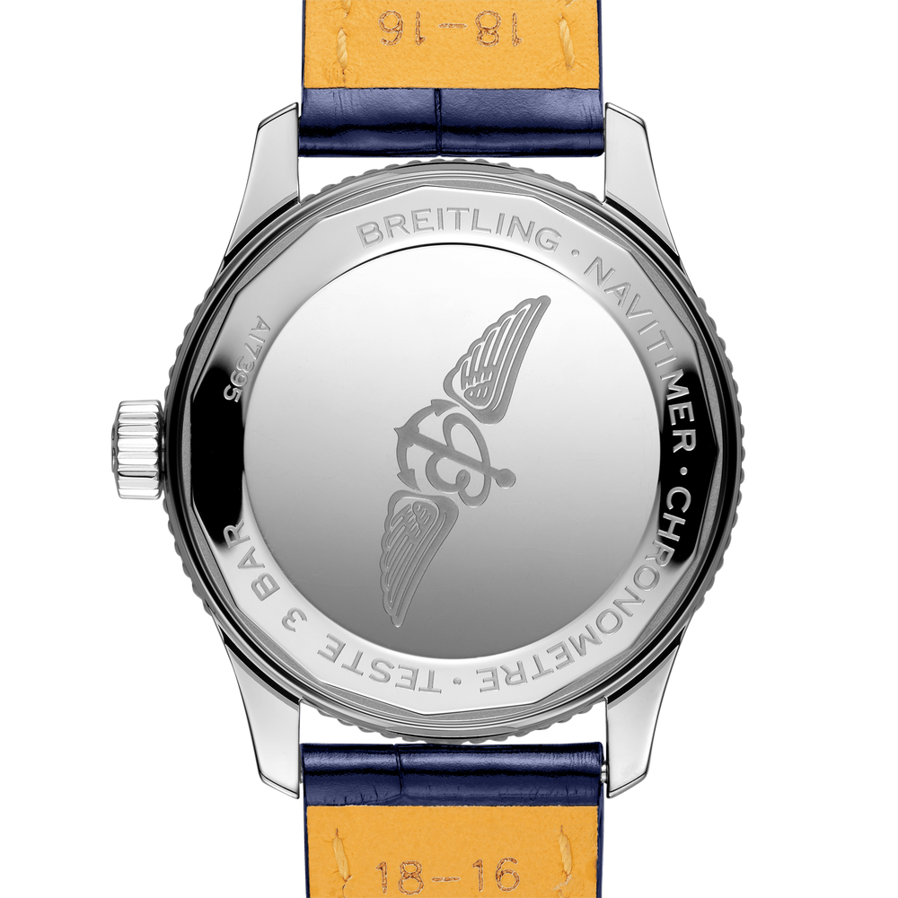 Das 35-mm-Gehäuse ist in vielen verschiedenen Materialien erhältlich, auch in Edelstahl und 18-karätigem Rotgold, und verfügt über eine Perlenlünette. Bei den Zifferblättern ist eine Reihe eleganter Farben erhältlich sowie eine diamantbesetzte Version aus weissem Perlmutt. Die Navitimer Automatic 35 ist mit einem passenden Metallarmband oder einem Alligatorlederarmband mit einer Dorn- oder Faltschliesse aus Edelstahl erhältlich. Angetrieben wird sie vom Breitling-Kaliber 17, einem COSC-zertifizierten Chronometer.