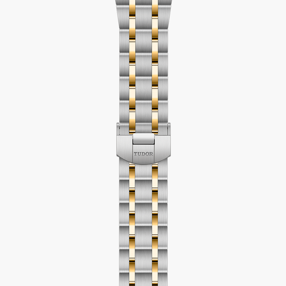Verschraubbare Aufzugskrone mit TUDOR Logo. Edelstahl, überzogen mit 0,1 mm Gelbgold