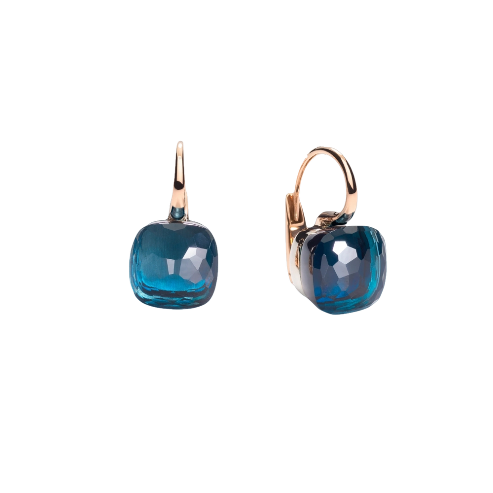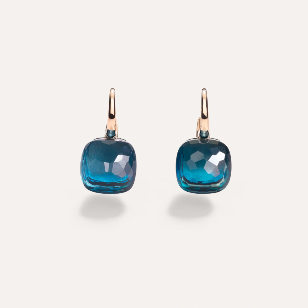 Ohrringe aus 18K Rosé- und Weißgold mit 2 Londoner Blautopasen (≈18 ct).