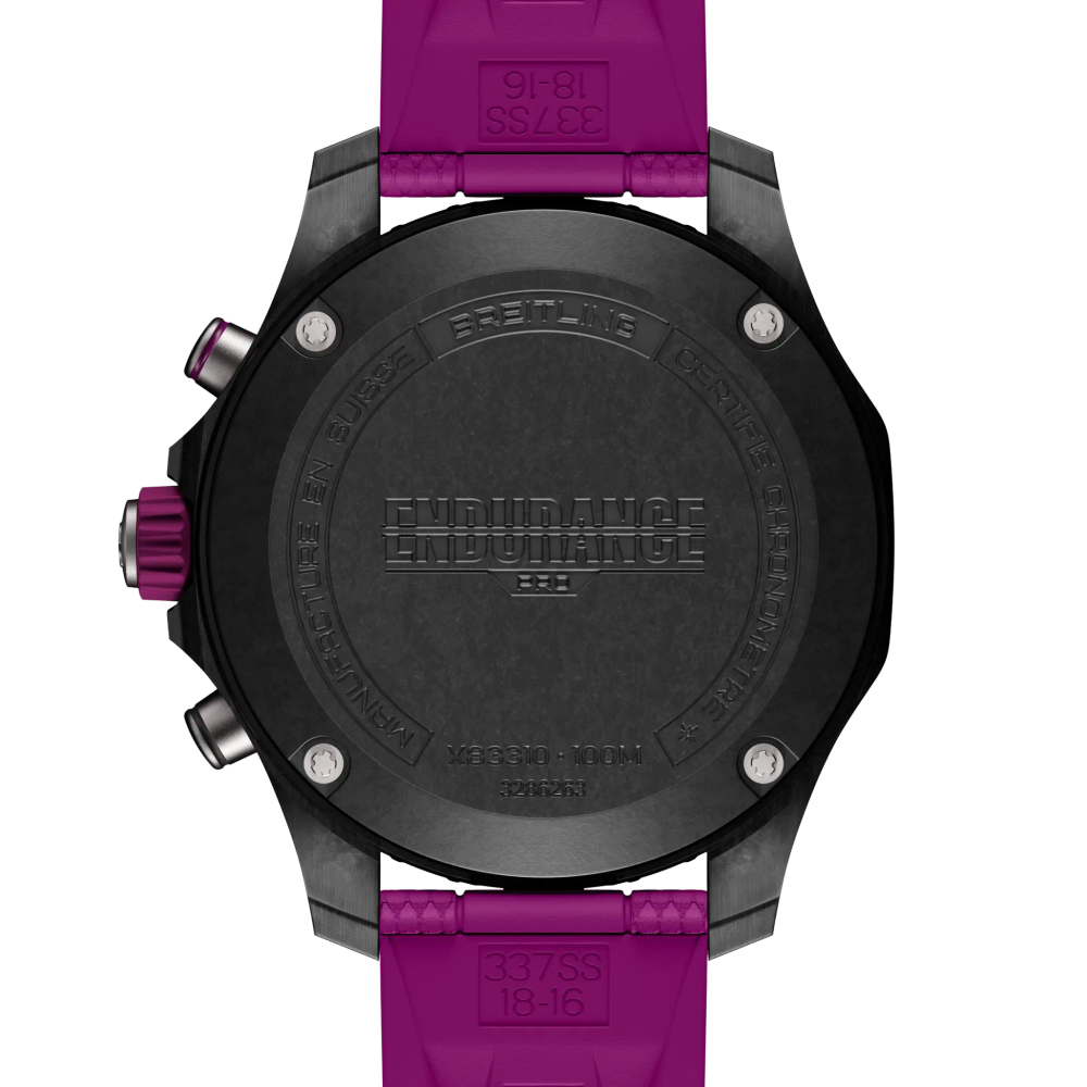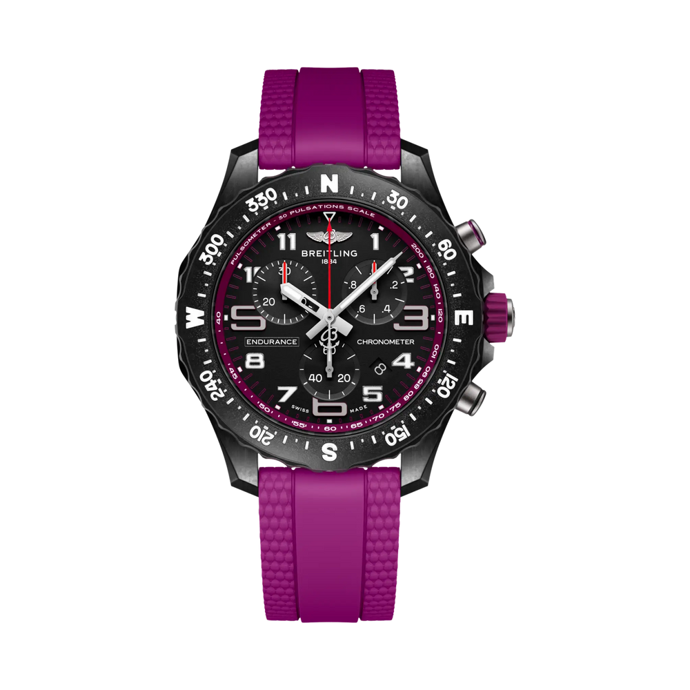Neben einem Durchmesser von 44 mm oder 38 mm haben Athleten bei der Endurance Pro ausserdem die Wahl zwischen zahlreichen farbenfrohen Zifferblättern und Kautschukarmbändern mit der Breitlight®-Dornschliesse. Beide Grössen werden vom Breitling-Kaliber 82 bzw. 83 angetrieben. Diese COSC-zertifizierten SuperQuartz™-Chronographen zeichnen sich durch eine aussergewöhnliche Ganggenauigkeit aus.