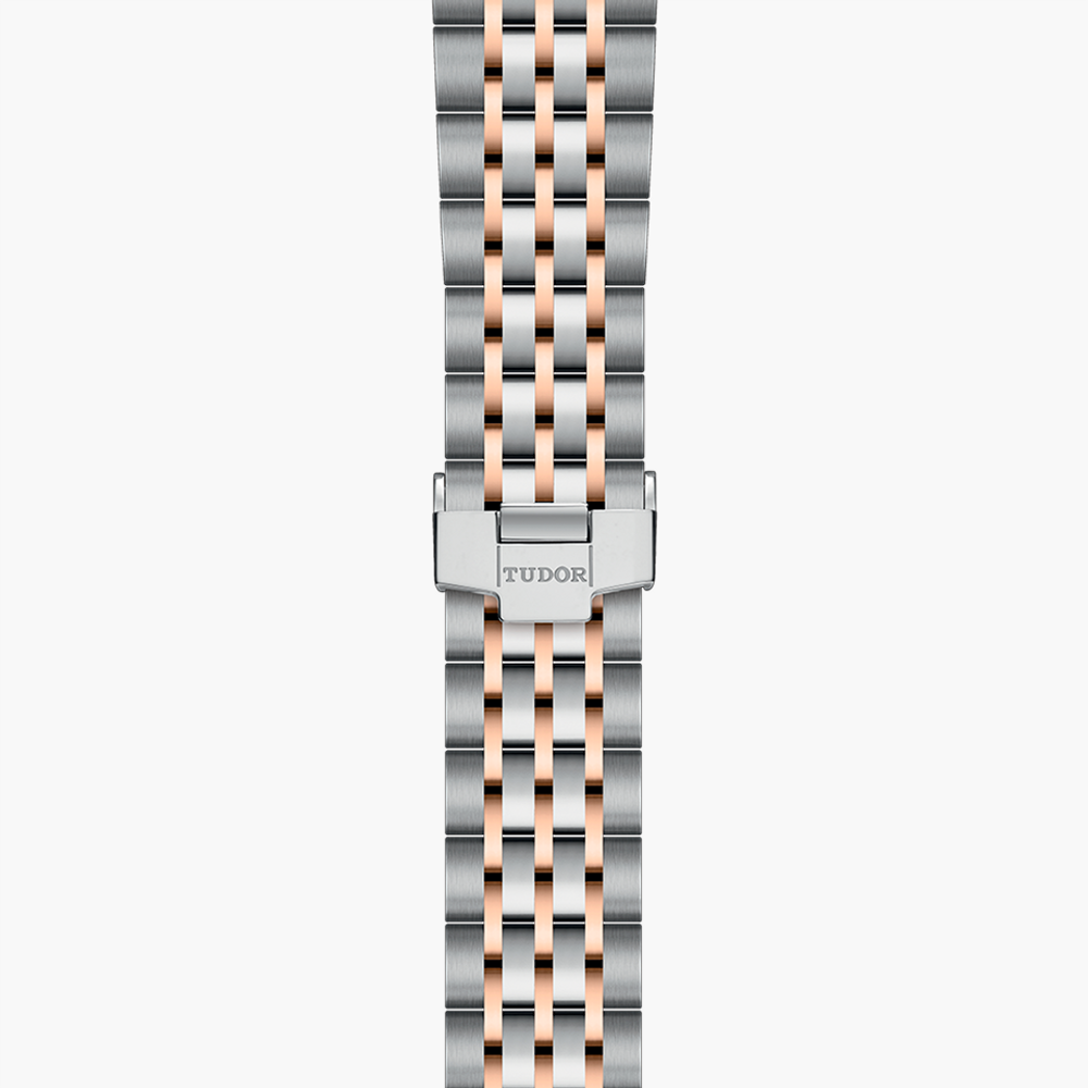 Premiers maillons de centre en acier ou en or rose massif. Autres maillons de centre en acier ou acier coiffé de 0,2 mm d’or rose