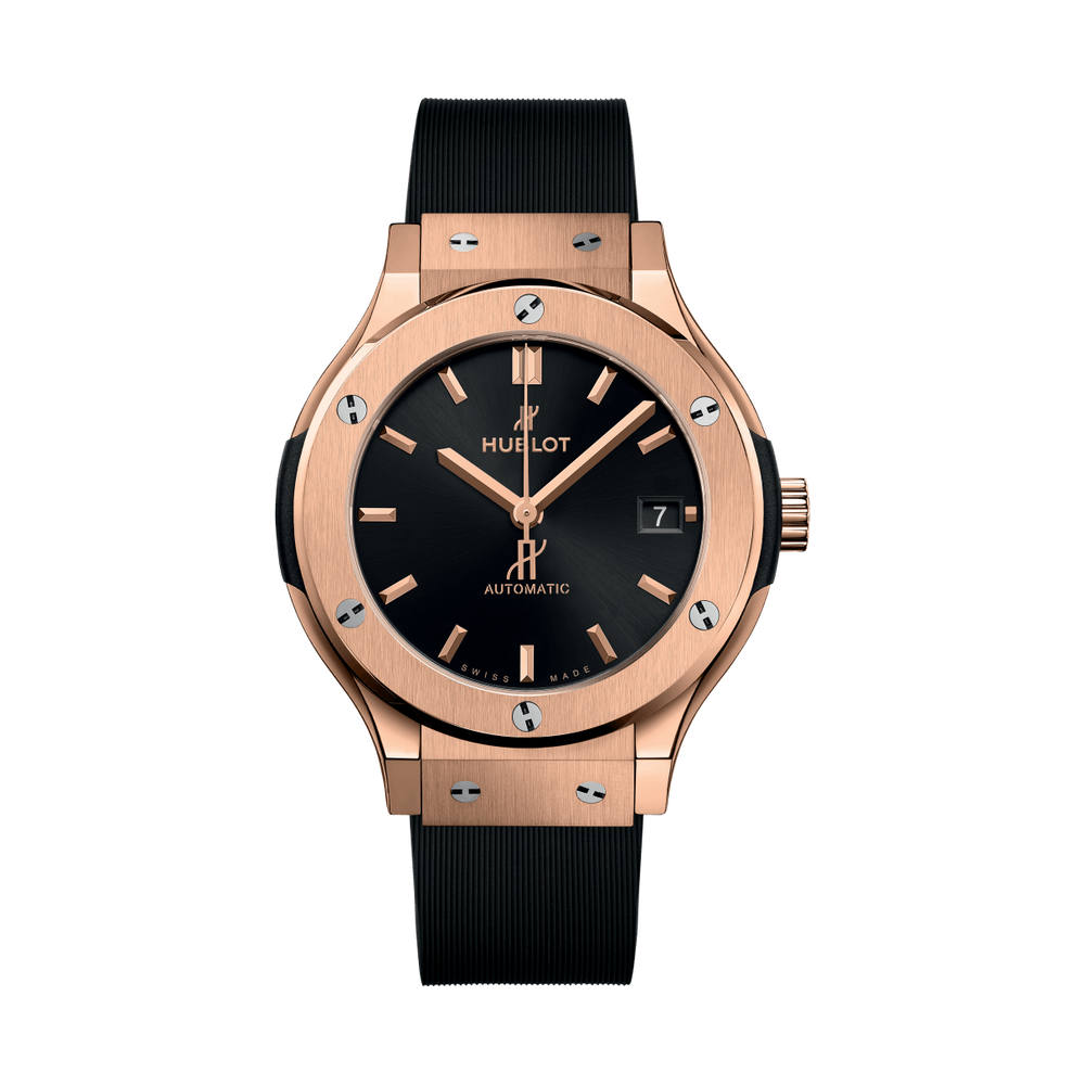 Bezel: Vertical Satin-finished 18K King Gold with 6 H-shaped Titanium Screws