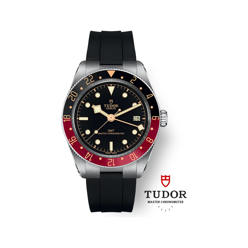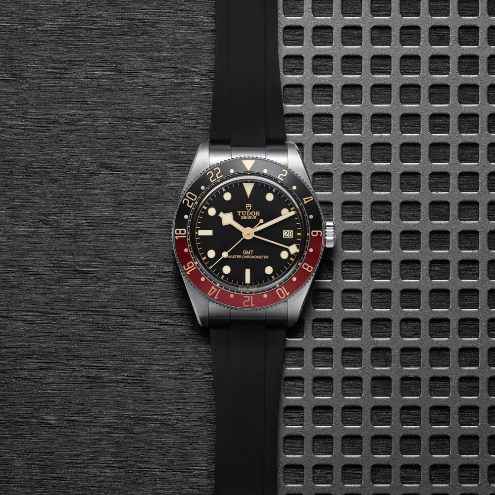24-hour bidirectional rotatable bezel in stainless steel with black and burgundy anodised aluminium insert