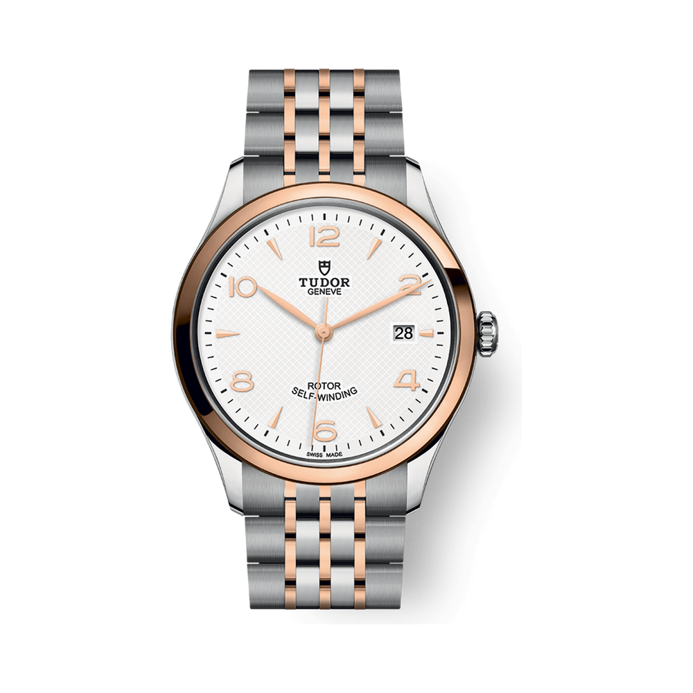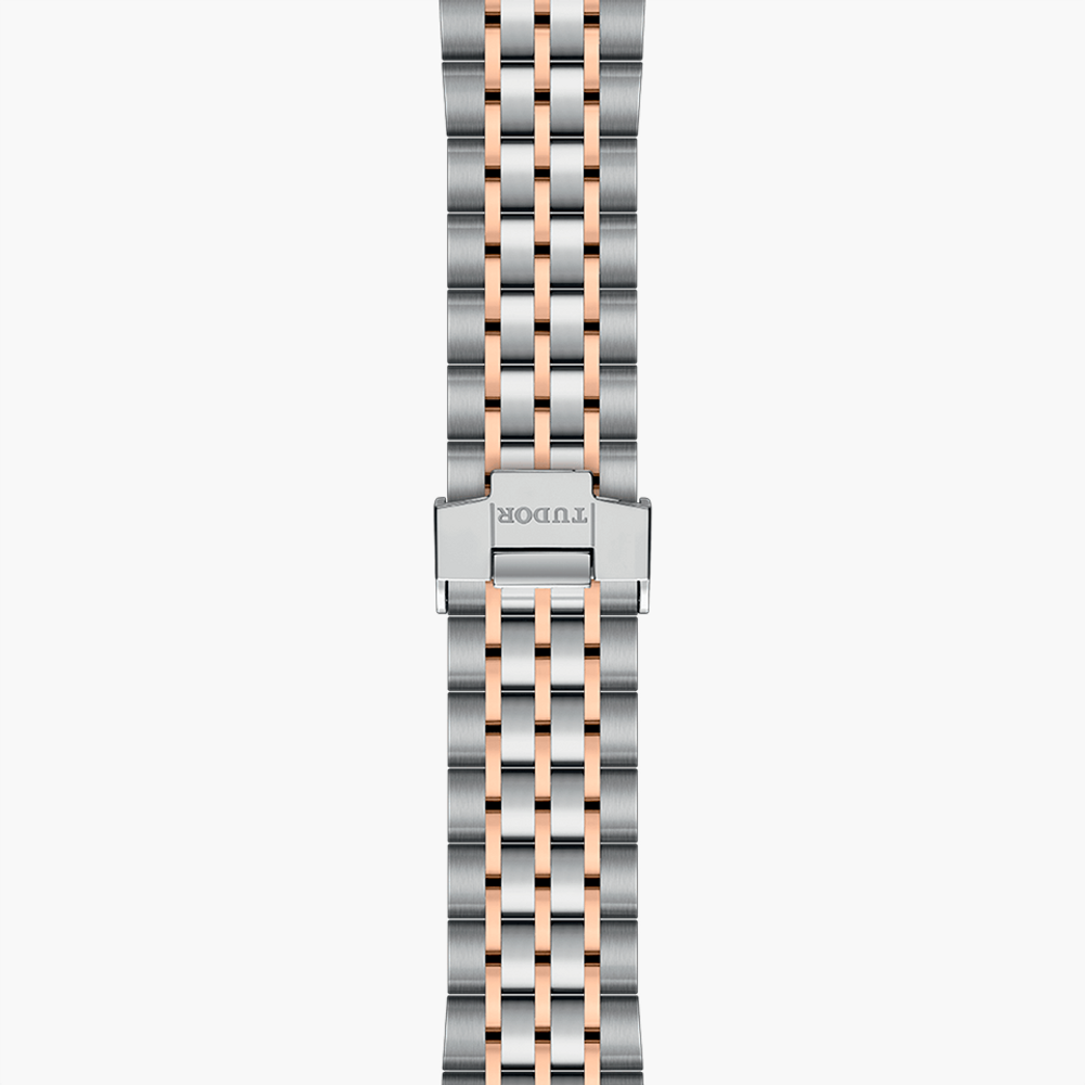 First center links in steel or solid rose-gold. Remaining center links in steel or steel covered by a 0.2mm rose gold cap